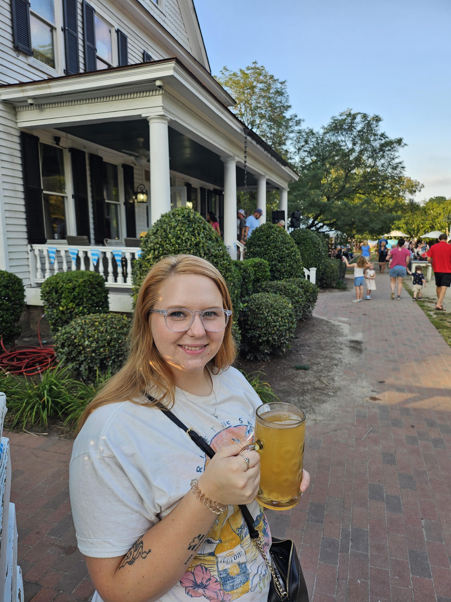 The bartenders were kind, offering up a sample of the drinks we had considered. After receiving our steins filled with pungo strawberry shortcake ciders, we stepped outside to further explore. There were several large canopies strung with fairy lights, and the benches beneath were packed with families, college students and military members alike.